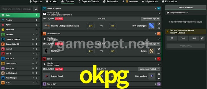 O okpg oferece uma grande seleção de opções de apostas em e-sports com probabilidades competitivas